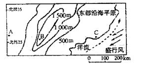 读“我国东部某地的等高线示意图”,图中所示的所有等高线中,等高距为100m,数值最大的一条为400m。回答69-70题。