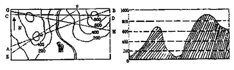 读下面“等高线图和地形剖面图”,回答43-44题。