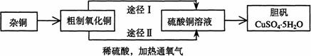 (3)通过途径Ⅱ实现用粗制氧化铜制取胆矾,必须进行的实验操作步骤:酸溶、加热通氧气、过滤、 ▲ 、冷却结晶、 ▲ 、自然干燥;