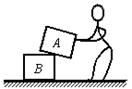 某人有一种不用绳子,在大理石地面上同时移动两个货箱的办法,如下图所示:把A货箱斜放在B货箱上面,人沿水平方向推,两个箱子同时做匀速直线运动。已知两个货箱的质量都是m,人对货箱的水平推力大小F。下面的说法中正确的是