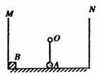25.(20分)如图所示,细轻绳一端拴一很小的环,套在一垂直于纸面的光滑水平轴O上,另一端拴一质量m=0.01kg的小钢球A,绳长L=0.25m。小球和水平面接触但无相互作用,球两侧等距处放有固定挡板M、N,M、N间的距离L‘=2m。现有一质量也为m=0.01kg的小铁块B靠在M挡板处,它与水平面间的动摩擦因数μ=0.25,铁块与小球连线垂直于挡板和绳。现铁块B以初速度v0=10m/s从挡板M处向小球A运动。若铁块和小球均可视为质点,铁块与小球碰撞及铁块与固定挡板碰撞的过程中,机械能都没有损失。