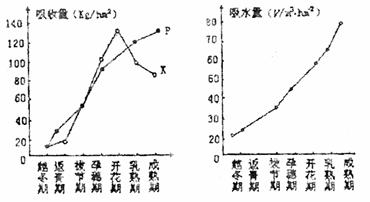 4.下图为冬小麦在不同生长时期对K、P和水的吸收量,根据图分析所得推论不合理的是