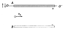 如图所示,在某一真空空间,有一水平放置的理想平行板电容器充电后与电源断开,若正极板A以固定直线00/为中心沿竖直方向作微小振幅的缓慢振动时,恰有一质量为m带负电荷的粒子(不计重力)以速度