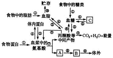 Ⅱ.下图表示人和动物的糖类、脂类、蛋白质代谢,据图回答: