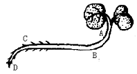 D.B处生长素浓度较A处高,茎弯曲向下生长
