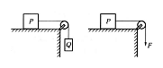 如图所示,物体P置于光滑的水平面上,用轻细线跨过质量不计的光滑定滑轮连接一个重力G=10N的重物,物体P向右运动的加速度为a1;若细线下端不挂重物,而用F=10N的力竖直向下拉细线下端,这时物体P的加速度为a2,则