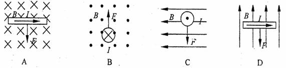 16.如图所示,磁场磁感应强度B的方向、通电直导线中电流I的方向,以及通电直导线所受磁场力F的方向,其中正确的是