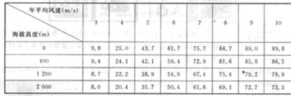 风力发电机在不同海拔和风速下的闩发电量(度)统计表