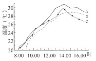 下图是某研究性学习活动小组对某地的陵园(林地)、操场(裸地)以及足球场(草地)的气温观测结果。图中a、b、c三条曲线分别对应的地点是