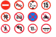 31、不同颜色的交通标志表达不同的意义,请根据你平时的观察,看下面四组交通标志回答问题。(共2.5分)