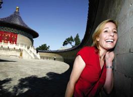 北京天坛的回音壁有非常美妙的声音现象,这是一名外国游客在天坛回音壁前细听回音。回音壁就是皇穹宇的外围墙。呈正圆形,直径 65.1 米,厚 0.9 米,墙面光洁平整,如果两人分别站在东西两侧墙根,面向北低声说话,就像听电话一样清晰。这种声音现象实际上是建筑师利用声音 造成的音响效果。