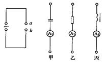 在如图电路的a、b两点间逐次将图中的电路元件甲、乙、丙单独接入,当使交流电频率增加时,可以观察到下列哪种情况