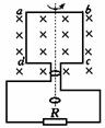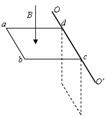 (20分)如图所示,由导线制成的正方形框边长为L,每条边的电阻均为R,其中ab边材料较粗且电阻率较大,其质量为m,其余各边的质量均可忽略不计.线框可绕与cd边重合的水平轴oo’自由转动,不计空气阻力及摩擦.若线框从水平位置由静止释放,历时t到达竖直位置,此时ab边的速度为v.若线框始终处在方向竖直向下、磁感应强度为B的匀强磁场中,重力加速度为g.求: