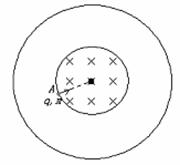 如图所示:为两个共轴金属圆筒,轴线与纸面垂直,内筒半径为R,筒壁为网状(带电粒子可无阻挡地穿过网格)。当两圆筒之间加上一定电压后,在两圆筒间的空间可形成沿半径方向的电场。内圆筒包围的空间存在一沿圆筒轴线方向的匀强磁场,磁场的磁感应强度的大小为B,方向指向纸内。一束质量为m、电量为q的带正电的粒子以各种不同的速率自内圆筒壁上的A点沿内圆筒半径射入磁场,现要求有的粒子的运动能满足下面三个条件:①刚刚能到达外筒的内壁而不与外筒相碰;②粒子恰能从A点射出磁场;③每个粒子在磁场区域内运动所经过的总时间等于该粒子在所给磁场中做完整的圆周运动时的周期的一半。