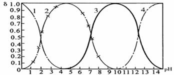 1表示H3PO4;2表示H2PO4-;3表示HPO42-;4表示PO43-