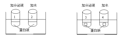 5、猪笼草是一种食虫植物,为了验证猪笼草分泌液中有蛋白酶,某学生设计了两组实验,如下图所示。在35℃水浴中保温一段时间后,1、2中加入适量双缩脲试剂,3、4两组不加任何试剂,下列实验能达到目的的是: