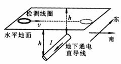 如图所示,在水平地面下有一条沿东西方向铺设的水平直导线,导线中通有自东向西稳定、强大的直流电流。现用一闭合的检测线圈(线圈中串有灵敏的检流计,图中未画出)检测此通电直导线的位置,若不考虑地磁场的影响,在检测线圈位于水平面内,从距直导线很远处由北向南沿水平地面通过导线的止方并移至距导线很远处的过程中,俯视检测线圈,其中的感应电流的方向是