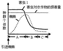 在农田里,为消灭害虫而引入蜘蛛后,对两个种群进行调查得出下图所示的结果。下列叙述中正确的是( )