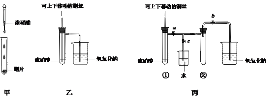 29.(16分)下图甲是课本中验证铜和浓硝酸反应的装置,乙、丙是师生对演示实验改进