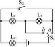 D. S2闭合,S1与b连接,三只灯泡都发光,L3的亮度小于L2的亮度