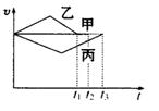 甲、乙、丙三辆汽车以相同的速度通过某一路标,从此时开始,甲做匀速直线运动,乙先做匀加速后做匀减速,丙先做匀减速后做匀加速,其V-t图如图所示,它们经过下一个路标的速度相同,则( )