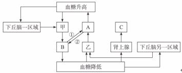 (1)图中甲、乙分别表示____________(结构),A、B、C分别表示____________(激素)。