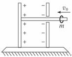d的绝缘杆,左端固定在左极板上,电容器极板连同底座、绝缘杆总质量为M。给电容器充入电量Q后,有一质量为m的带电量+q的环套在杆上以某一初速度v0对准小孔向左运动(M=3m)。设带电环不影响电容器板间电场的分布,电容器外部电场忽略不计。带电环进入电容器后距左板最小距离为