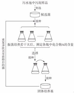 31.(22分)某化工厂的污水池中,含有一种有害的、难于降解的有机化合物A。研究人员用化合物A、磷酸盐、镁盐以及微量元素配制的培养基,成功地筛选到能高效降解化合物A的细菌(目的菌),实验的主要步骤如图所示。请分析回答问题:
