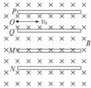 25.(20分)如图所示,两个几何形状完全相同的平行板电容器PQ和MN,水平置于水平方向的匀强磁场中,磁场方向垂直纸面向里(磁场区域足够大),两电容器极板左端和右端分别在同一竖直线上。已知P、Q之间和M、N之间的距离都是d,板间电压都是U,极板长度均为l。今有一电子从极板边缘的O点以速度v0沿P、Q两板间的中心线进入电容器,并做匀速直线运动穿过电容器,此后经过磁场偏转又沿水平方向进入到电容器M、N板间,在电容器M、N中也沿水平方向做匀速直线运动,穿过M、N板间的电场后,再经过磁场偏转又通过O点沿水平方向进入电容器P、Q极板间,循环往复。已知电子质量为m,电荷为e。