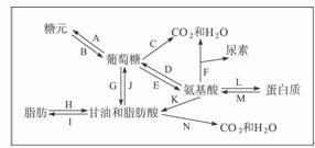 31.(22分)随着人类生活水平的提高,糖尿病、肥胖症、动脉硬化、高血压、脂肪肝等疾病的发病率有上升趋势。这些疾病的发生与人类营养失衡导致体内营养物质代谢紊乱有密切的联系。下图表示人体细胞三大营养物质代谢的关系,请回答: