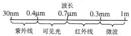 (1)(4分)部分电磁波的大致波长范围如图所示.若要利用缝宽与手指宽度相当的缝获得明显的衍射现象,可选用 波段的电磁波