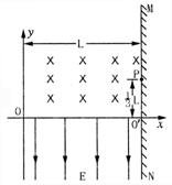 (2)若电子从坐标原点,沿y轴正方向以某一速度入射后垂直打在荧光屏上的P点,P点距x轴距离
