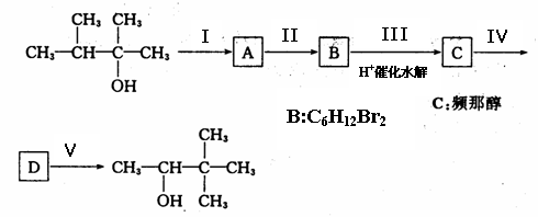 叫频那醇(-R烃基可相同也可不同),已知醇发生消去反应时,羟基优先跟相邻碳原子上含氢原子较少的碳原子上的氢原子一起消去生成烯。