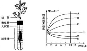 (3)从物质的量浓度变化曲线中,分析植株对A-E五种矿质元素的吸收状况:在实验初期植株对 的吸收最多,对 的需求量最小。(4分)
