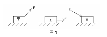 10.甲、乙、丙三个质量相同的物体均在水平地面上做直线运动,如图3所示.地面与物体间的动摩擦因数均相同,下列判断正确的是 ( )
