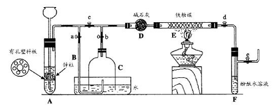 ① 检查实验装置的气密性后,关闭弹簧夹a、b、c、d、e。在A中加入锌粒,向长颈漏斗注入一定量稀硫酸。打开弹簧夹c、d、e,则A中有氢气发生。在F出口处收集氢气并检验其纯度。
