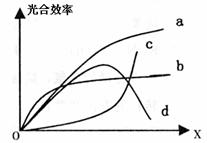 (3)如果X代表CO2的含量,CO2的含量影响光合作用主要是影响 ⑥ 产生,其最高限制因素可能是 ⑦ 。显微镜下观察某植物叶的横切片,发现维管束鞘细胞内含叶绿体,由此可以判断出某植物的光合作用的曲线最可能的是 ⑧ 。
