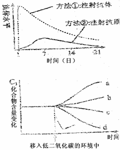 3.右图中的曲线显示了两种人体获得免疫力的方法。