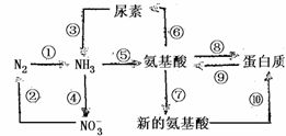 (二)(9分)下面是某同学画的自然界中氮元素以蛋白质形式在生物体内转化的部分过程示意图。请根据此图回答下列问题: