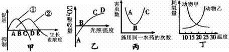 A.农业上常用一定浓度的生长素类似物除去单子叶农作物中的双子叶植物杂草,甲图中①表示单子叶植物,选用的生长素类似物的浓度最好在D点左右