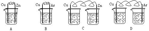 下列烧杯中盛放的都是稀硫酸,在铜电极上能产生大量气泡的是: