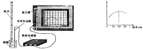(2)量取20.00 mL上述溶液倒入烧杯中,连接好DIS系统,向烧杯中滴加浓度为0.1000mol·L-1的氨水,计算机屏幕上显示出溶液导电能力随氨水体积变化的曲线(见上图).