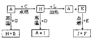 29. A、B、C、D、E、F是常见单质,其中A是用量最大,应用最广泛的金属;元素D是地壳中含量最多的金属元素;D元素和E元素在周期表中相邻。G、H、I、J、K、L是常见化合物,其中G在常温下是无色液体,H是黑色晶体。以上物质相互间的转化关系如下图所示: