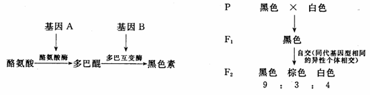 Ⅱ.(16分)遗传学的研究知道,小鼠的毛色是受A、a和B、b两对等位基因控制的,这两对基因分别位于两对常染色体上。据研究,正常小鼠体内黑色素的形成是经过下列系列化途径产生的如下左图:
