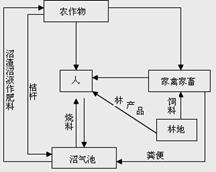 在社会主义新农村建设中,某地通过新建沼气池和植树造林,构建了新型农业生态系统(如图所示)。下列关于该生态系统的分析错误的是