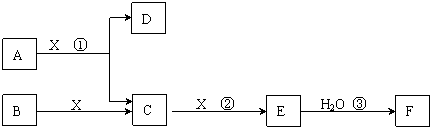 A.工业制取F时,C和X生成E的反应是在吸收塔进行