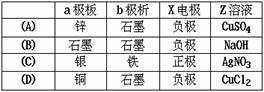13、右图中x、y分别是直流电源的两极,通电后发现a极板质量减少,b极板处质量增加,符合这一情况的是( )