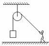 如图所示,人用绳子通过定滑轮拉起重物,当人和重物都保持静止时,下述说法中正确的是 ①人可能只受到三个力的作用 ②人一定受到四个力的作用③人一定受地面静摩擦的作用,其方向水平向右 ④人可能没有受到地面支持力的作用: