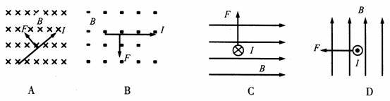 17、在图中,F表示磁场对直线电流的作用,其中错误的是 ( )