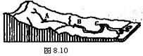 图10中河流在A、B、C三处主要的流水作用依次是( )